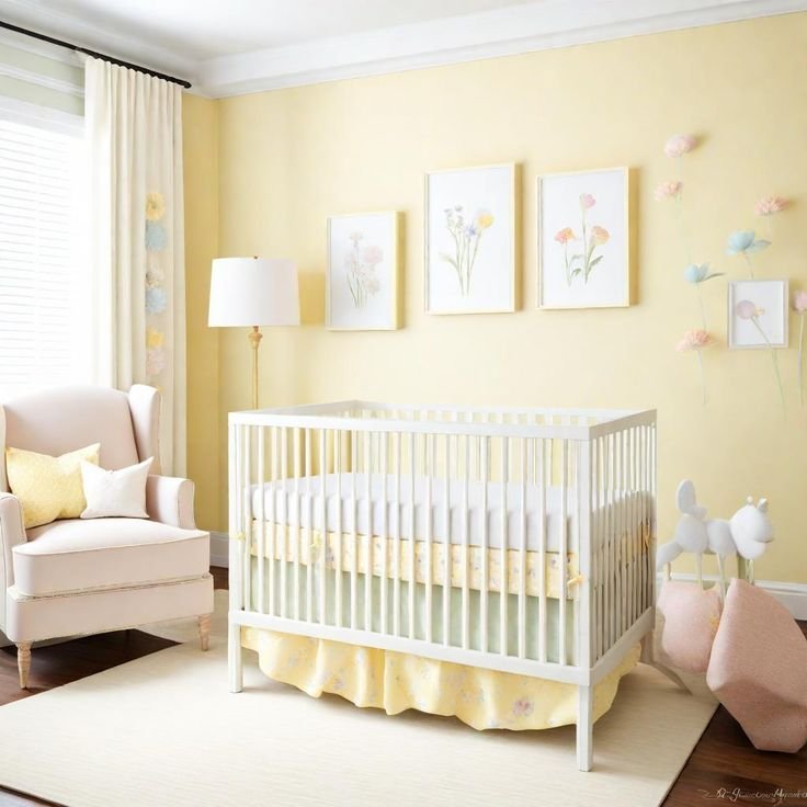 Paredes: Use tinta amarelo pastel em detalhes, como meia parede ou nichos decorativos.