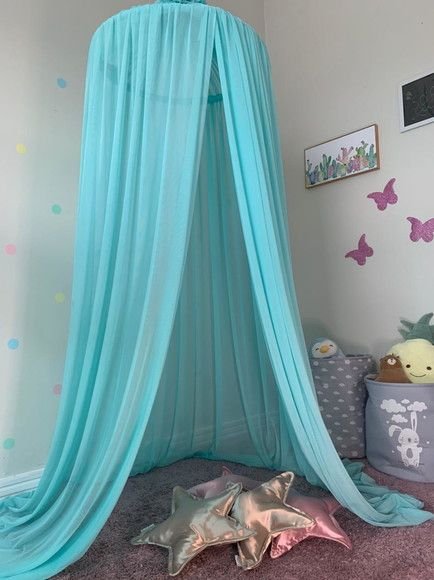 Um dossel acima da cama cria aquele clima de princesa que toda menina adora! Você só precisa de um bambolê (daqueles de ginástica), tecido de tule ou voal na cor favorita da sua filha, fita de cetim e um gancho resistente no teto.